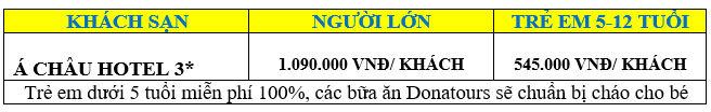 •  Trẻ em từ 05 tuổi trở xuống không tính vé, gia đình tự lo cho bé (Mỗi gia đình kèm 01 em, em thứ 02 trở lên mua ½ giá tour).