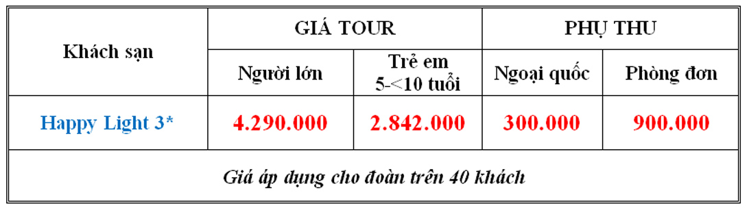 (Thứ tự chương trình có thể thay đổi cho phù hợp với tình hình thực tế của chuyến đi).